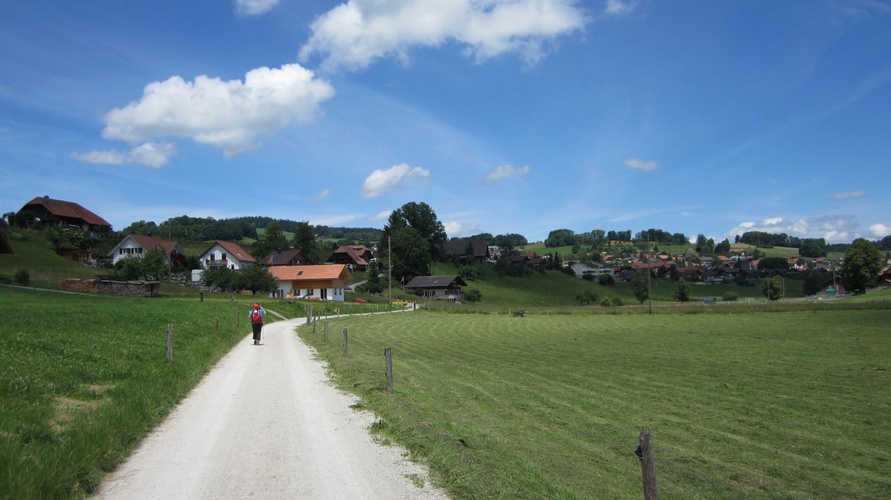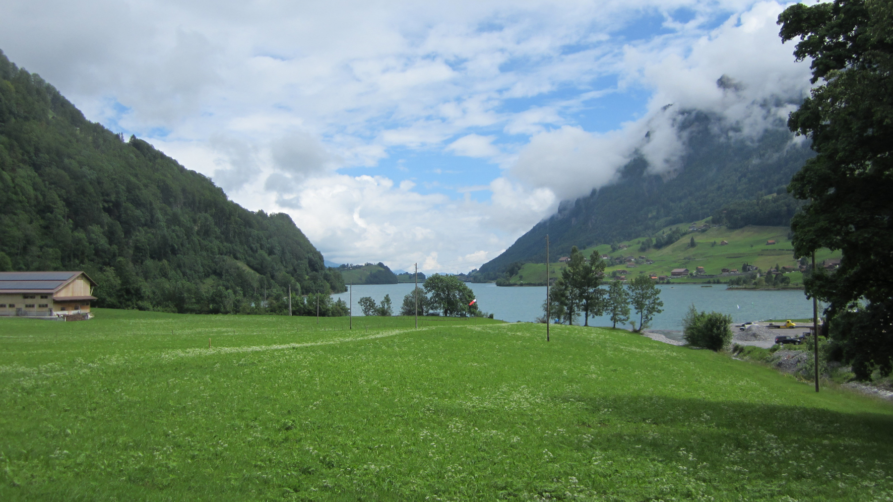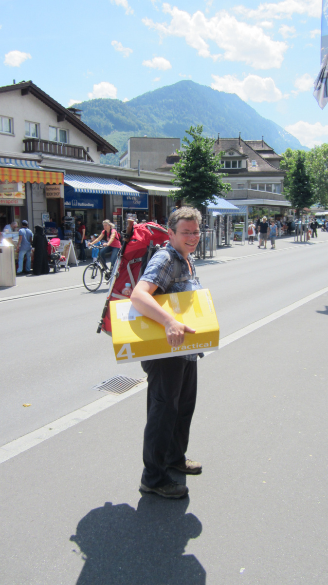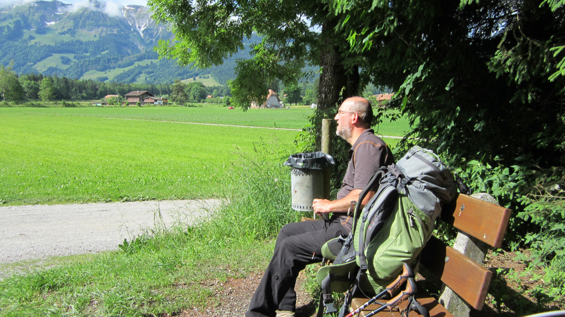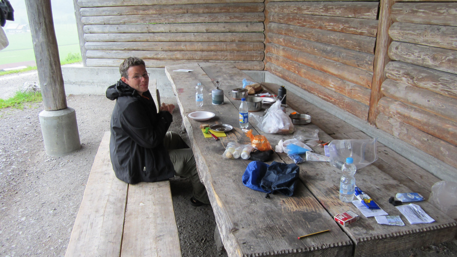 Im Juni 2012 machten wir uns dann auf den Weg durch die Schweiz. In Lindau setzten wir auf dem Schiff nach Rohrschach über von wo es auch losging. Der Weg führte über St. Gallen, Einsiedeln, Vierwaldstätter See, Flüeli, Brünigpass, Thun, Interlaken nach Rüeggisberg. Wir war schwer bepackt Unterwegs, was dazu führte, dass wir in Lungern bei einem Ruhetag unser Gepäck noch mal durchgingen und ca. 7 kg postlagernd nach Interlaken schickten. Der Weg durch die Schweiz war geprägt von sehr vielen Regentagen und wolkenverhangenem Himmel. Wir sind durch die Schweiz ohne so richtig die Berge gesehen zu haben. Dafür war es im Juni teilweise so kalt und regnerisch, dass wir uns einmal in einem Bahnhof in die Wartehalle mit einem heißen Kaffe aufwärmen mussten. Entdeckt habe wir aber das „Schlafen im Stroh“. Eine Schweizer Initiative, die es Bauern ermöglicht im Sommer Gäste aufzunehmen in den Stadeln, Ställen und ähnlichen Räumen. Die Übernachtung war „preiswert“ und die Frühstücke lecker und sehr reichhaltig. Das Schlafen auf Stroh in auch sehr erholsam und unheimlich bequem. Die Preise in der Schweiz zwangen uns, auf dem Weg selber zu kochen. D.h. wir hatten Gaskocher und Alutöpfe dabei und löslichen Kaffe (Jakobskaffee Espresso). So konnten wir auch Unterwegs uns immer wieder einen heißen Kaffee zubereiten. Vor dem Brünigpass war die Schweiz „katholisch“, d.h. an jedem schönen Fleckchen stand eine Bank zum Innehalten und Rast machen. Nach dem Brünigpass ist die Schweiz „potestantisch“, d.h. keine Sitzgelegenheiten mehr unterwegs! Das bedeutete bei Regen, sehr wenig Pausen und wenn man einen trocken Platz gefunden hat, mit dem Sitzkissen auf den Boden setzten.