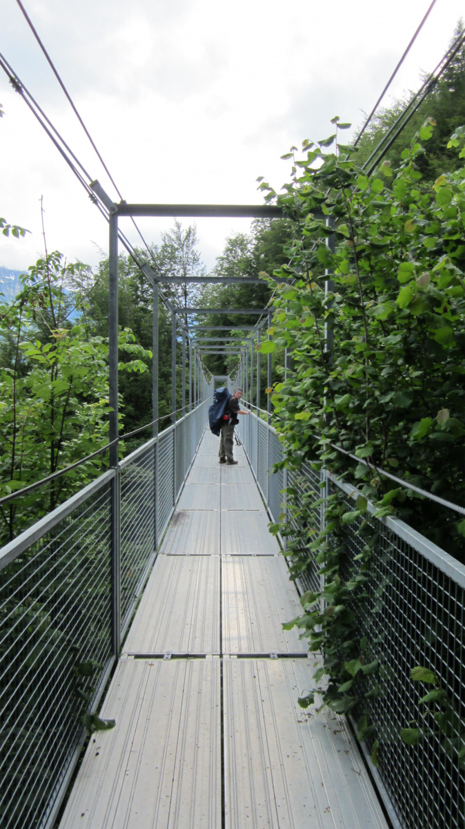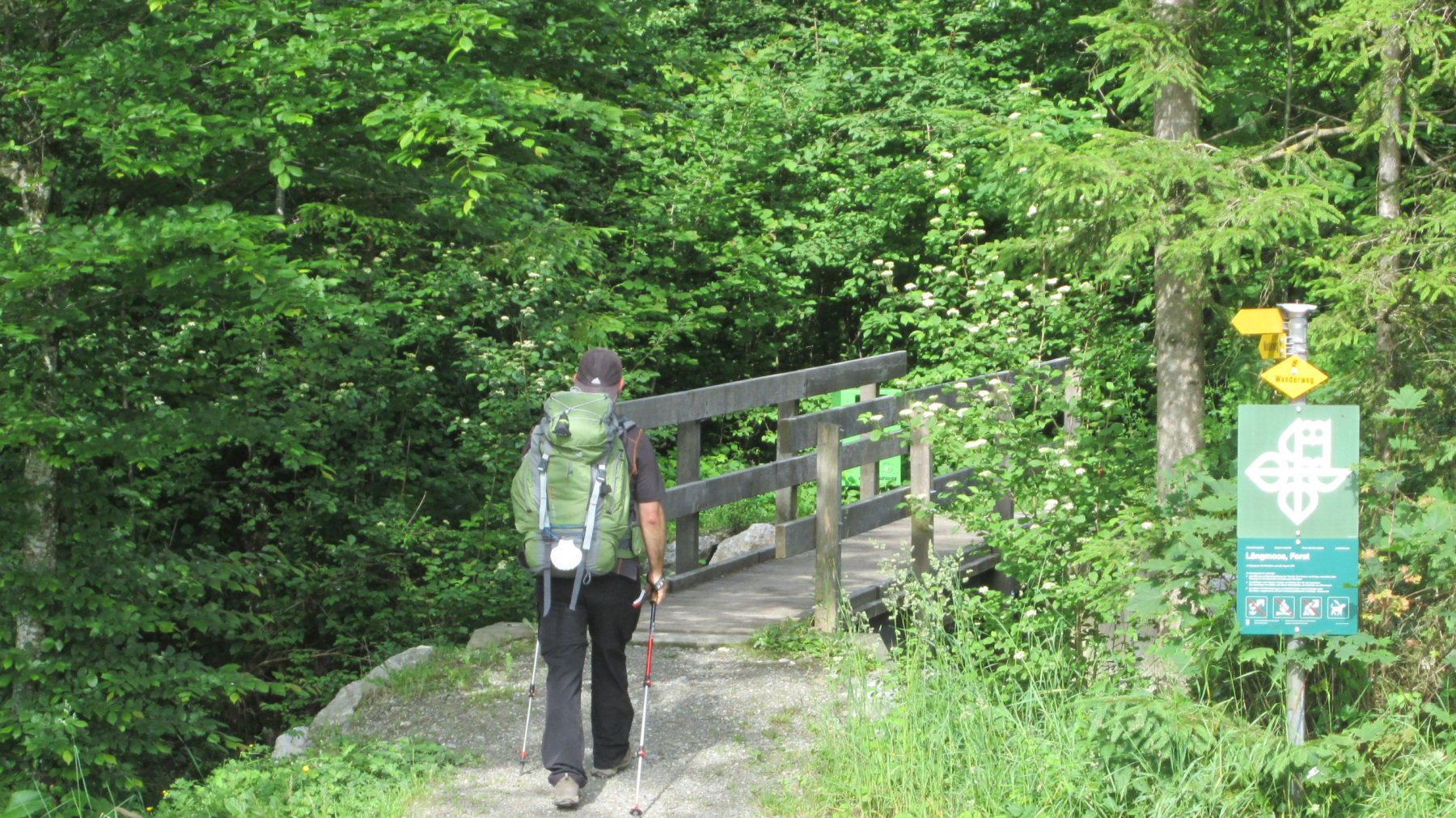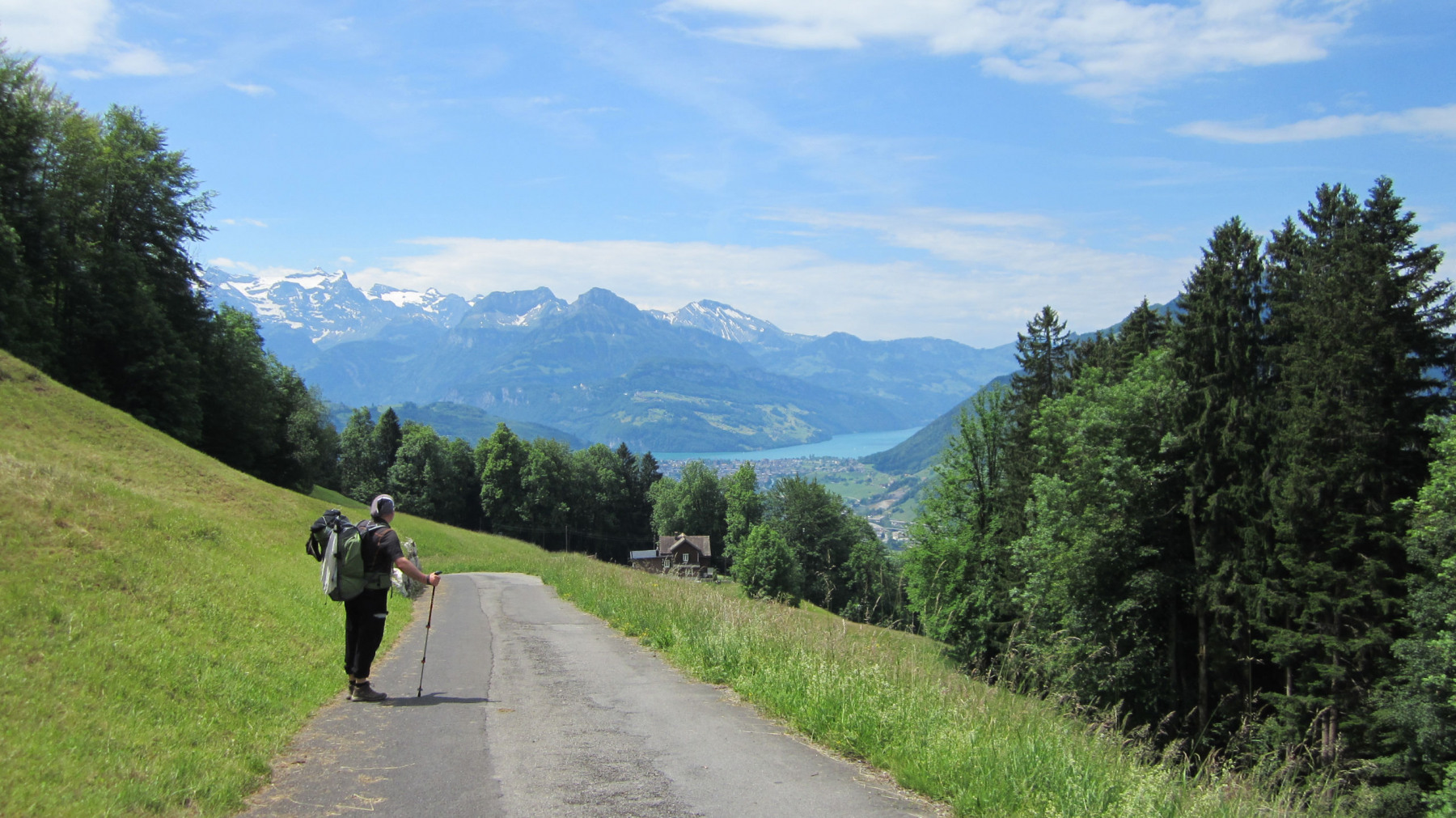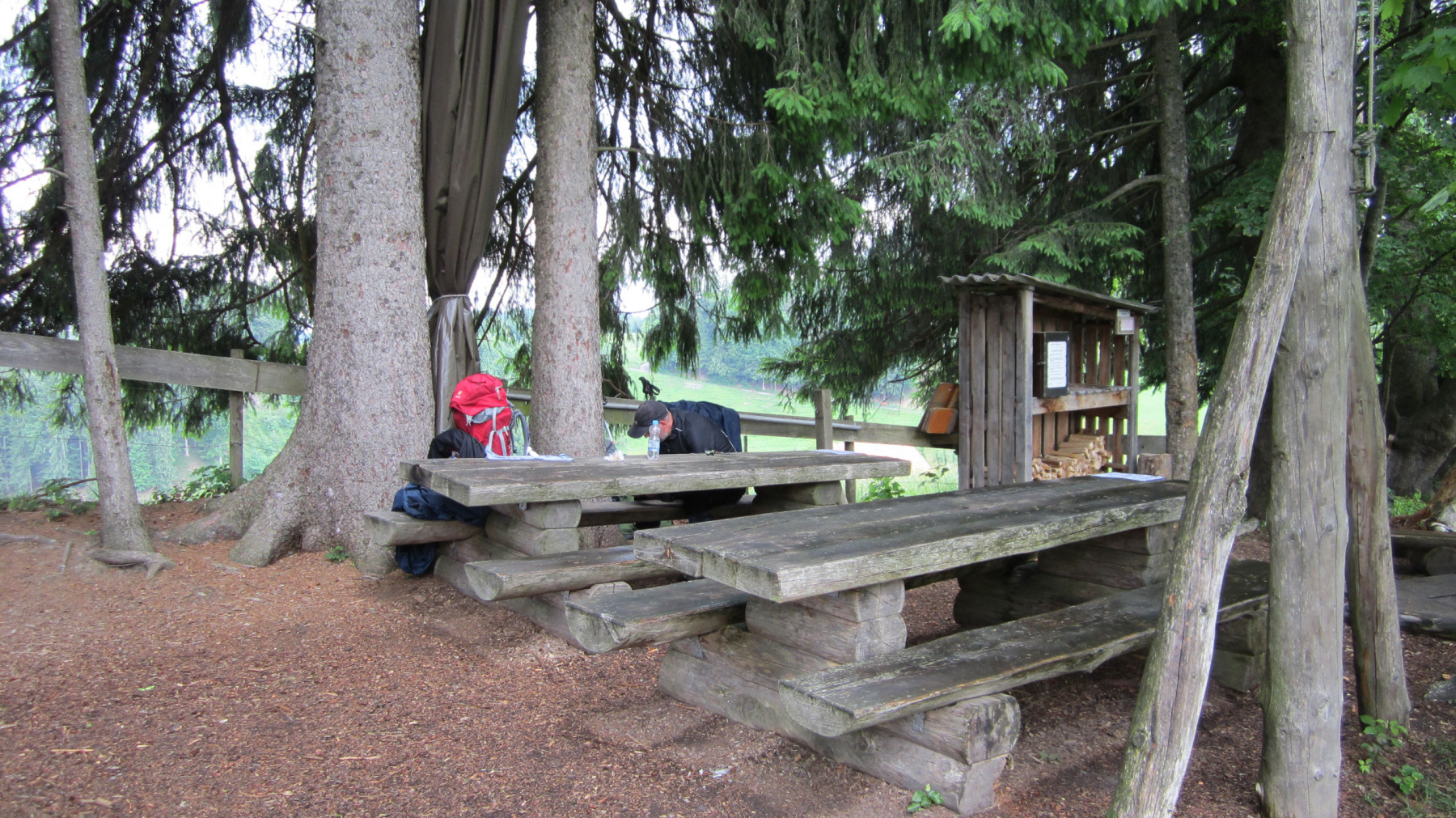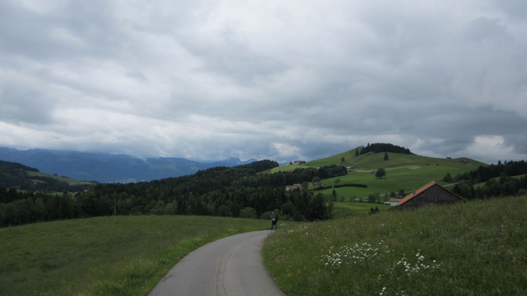 Im Juni 2012 machten wir uns dann auf den Weg durch die Schweiz. In Lindau setzten wir auf dem Schiff nach Rohrschach über von wo es auch losging. Der Weg führte über St. Gallen, Einsiedeln, Vierwaldstätter See, Flüeli, Brünigpass, Thun, Interlaken nach Rüeggisberg. Wir war schwer bepackt Unterwegs, was dazu führte, dass wir in Lungern bei einem Ruhetag unser Gepäck noch mal durchgingen und ca. 7 kg postlagernd nach Interlaken schickten. Der Weg durch die Schweiz war geprägt von sehr vielen Regentagen und wolkenverhangenem Himmel. Wir sind durch die Schweiz ohne so richtig die Berge gesehen zu haben. Dafür war es im Juni teilweise so kalt und regnerisch, dass wir uns einmal in einem Bahnhof in die Wartehalle mit einem heißen Kaffe aufwärmen mussten. Entdeckt habe wir aber das „Schlafen im Stroh“. Eine Schweizer Initiative, die es Bauern ermöglicht im Sommer Gäste aufzunehmen in den Stadeln, Ställen und ähnlichen Räumen. Die Übernachtung war „preiswert“ und die Frühstücke lecker und sehr reichhaltig. Das Schlafen auf Stroh in auch sehr erholsam und unheimlich bequem. Die Preise in der Schweiz zwangen uns, auf dem Weg selber zu kochen. D.h. wir hatten Gaskocher und Alutöpfe dabei und löslichen Kaffe (Jakobskaffee Espresso). So konnten wir auch Unterwegs uns immer wieder einen heißen Kaffee zubereiten. Vor dem Brünigpass war die Schweiz „katholisch“, d.h. an jedem schönen Fleckchen stand eine Bank zum Innehalten und Rast machen. Nach dem Brünigpass ist die Schweiz „potestantisch“, d.h. keine Sitzgelegenheiten mehr unterwegs! Das bedeutete bei Regen, sehr wenig Pausen und wenn man einen trocken Platz gefunden hat, mit dem Sitzkissen auf den Boden setzten.