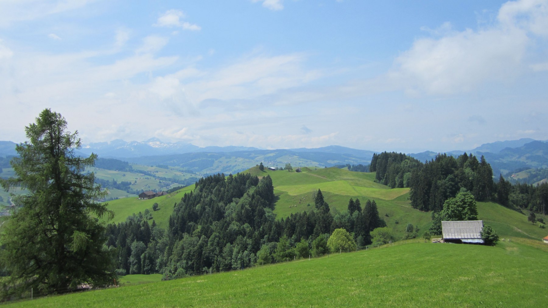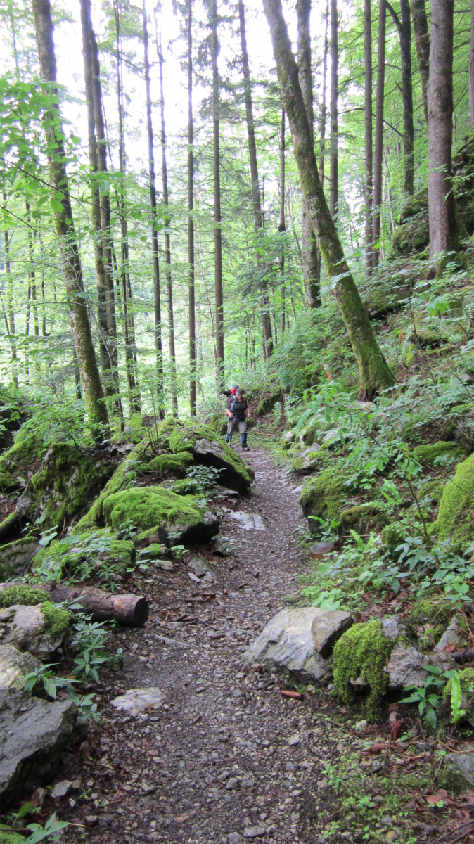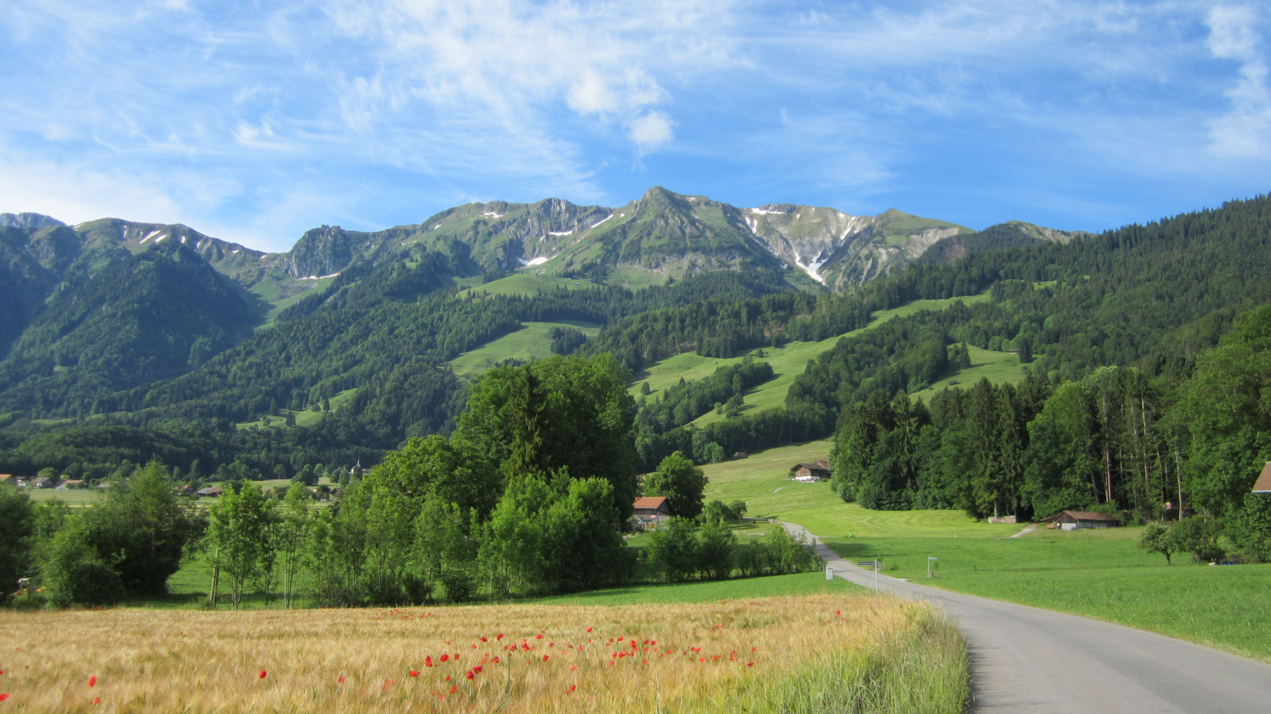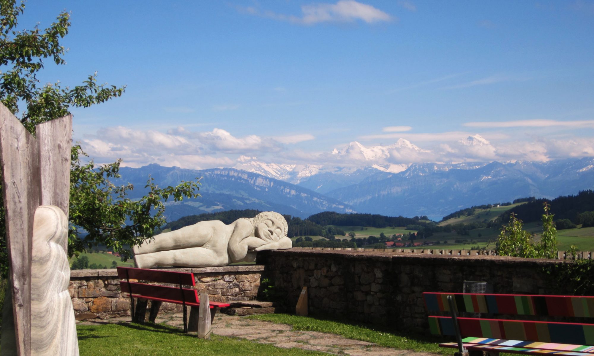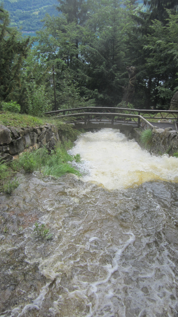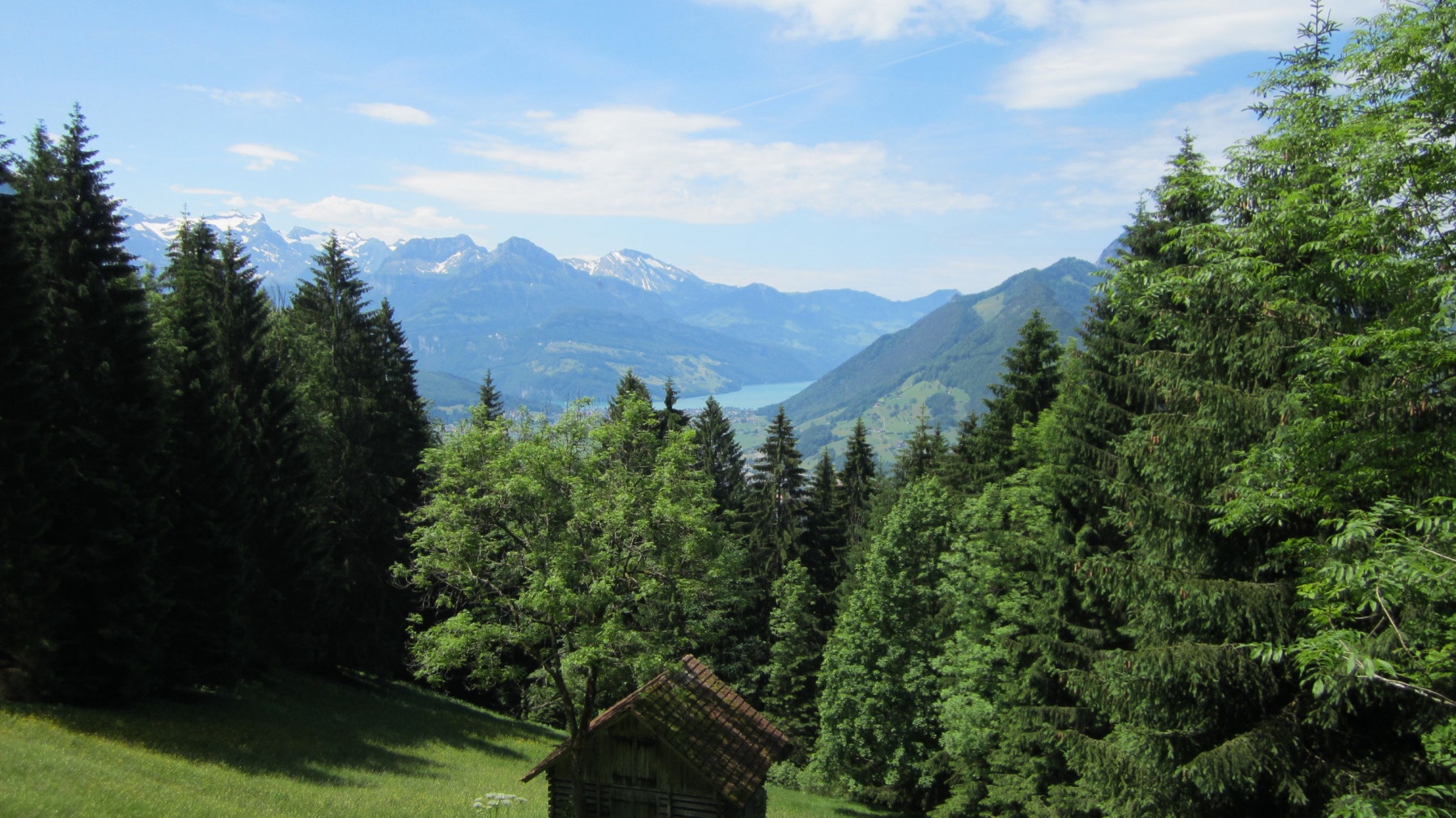 Im Juni 2012 machten wir uns dann auf den Weg durch die Schweiz. In Lindau setzten wir auf dem Schiff nach Rohrschach über von wo es auch losging. Der Weg führte über St. Gallen, Einsiedeln, Vierwaldstätter See, Flüeli, Brünigpass, Thun, Interlaken nach Rüeggisberg. Wir war schwer bepackt Unterwegs, was dazu führte, dass wir in Lungern bei einem Ruhetag unser Gepäck noch mal durchgingen und ca. 7 kg postlagernd nach Interlaken schickten. Der Weg durch die Schweiz war geprägt von sehr vielen Regentagen und wolkenverhangenem Himmel. Wir sind durch die Schweiz ohne so richtig die Berge gesehen zu haben. Dafür war es im Juni teilweise so kalt und regnerisch, dass wir uns einmal in einem Bahnhof in die Wartehalle mit einem heißen Kaffe aufwärmen mussten. Entdeckt habe wir aber das „Schlafen im Stroh“. Eine Schweizer Initiative, die es Bauern ermöglicht im Sommer Gäste aufzunehmen in den Stadeln, Ställen und ähnlichen Räumen. Die Übernachtung war „preiswert“ und die Frühstücke lecker und sehr reichhaltig. Das Schlafen auf Stroh in auch sehr erholsam und unheimlich bequem. Die Preise in der Schweiz zwangen uns, auf dem Weg selber zu kochen. D.h. wir hatten Gaskocher und Alutöpfe dabei und löslichen Kaffe (Jakobskaffee Espresso). So konnten wir auch Unterwegs uns immer wieder einen heißen Kaffee zubereiten. Vor dem Brünigpass war die Schweiz „katholisch“, d.h. an jedem schönen Fleckchen stand eine Bank zum Innehalten und Rast machen. Nach dem Brünigpass ist die Schweiz „potestantisch“, d.h. keine Sitzgelegenheiten mehr unterwegs! Das bedeutete bei Regen, sehr wenig Pausen und wenn man einen trocken Platz gefunden hat, mit dem Sitzkissen auf den Boden setzten.
